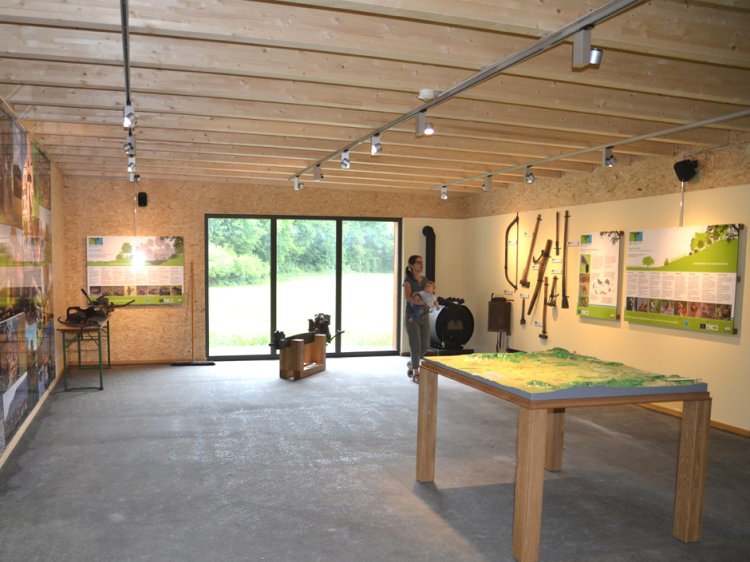 Mit alten Werkzeugen aus der Forstwirtschaft und interaktiven Tafeln lernt der Gast spielerisch die traditionelle Bewirtschaftungsform sowie die Bewohner des Mittelwaldes und anderer Kernlebensräume am Steigerwaldrand kennen. Einige dieser Arten können sogar in Schaukästen aus nächster Nähe betrachtet werden.