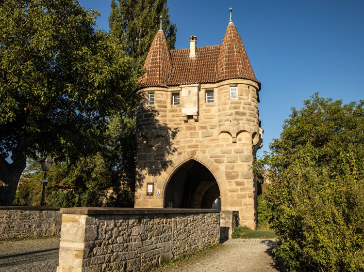 Seine Erbauung fällt in die Regierungszeit des Bischofs Johann III. von Grumbach (1455 – 1466), dessen Wappen die Pechnase an der Außenseite trägt. Bemerkenswert ist das „Schlupflöchlein“ in den noch heute eingehängten Torflügeln, das geöffnet wurde, wenn ein verspäteter Ankömmling um Einlass bat.
