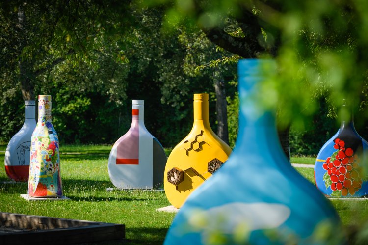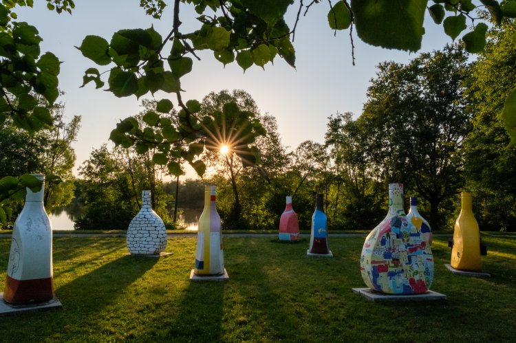 Bei einem Spaziergang um den Iphöfer Stadtsee entdecken Sie zehn übergroße, farbige, unterschiedlich gestaltete Bocksbeutel PS Skulpturen. Ob Bienenwaben, Weinbergsmauern, Trauben und andere Weinmotive, bei der künstlerischen Gestaltung stand das Thema Wein im Fokus.