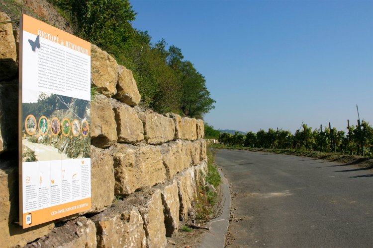 Auf schönsten Spazierwegen entlang des Sonnenhangs oberhalb der Weinlage Kronsberg vermitteln 14 attraktive Informationstafeln, sozusagen im Vorbeigehen, jede Menge über