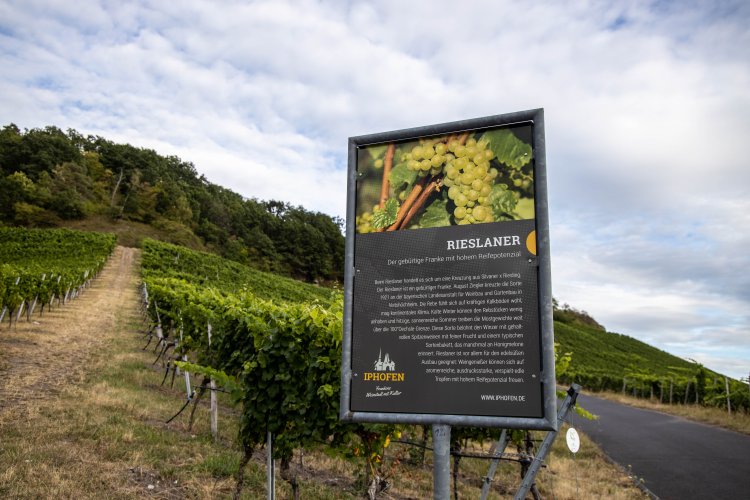 Die Reben sind der Ursprung des genussvollen Iphöfer Weins. Der Rebsorten-Lehrpfad entlang der Weinlage Kronsberg erläutert die wichtigsten und klassischen fränkischen Rebsorten.